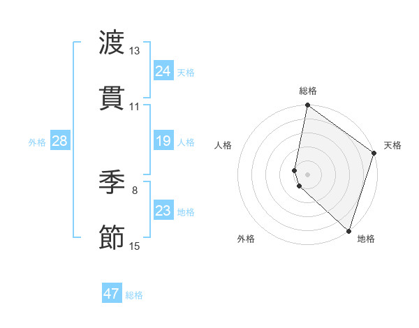 渡貫 季節さんを姓名の画数から五運を鑑定