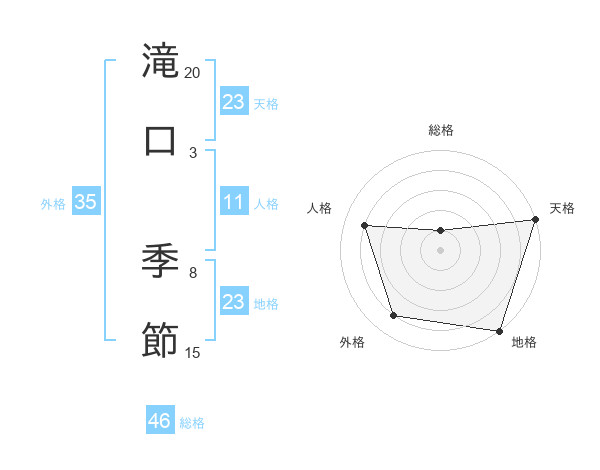 滝口 季節さんの天格は23画の5点!