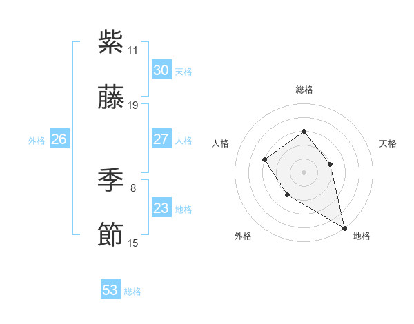 紫藤 季節さんを姓名の画数から五運を鑑定