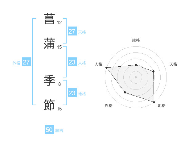 菖蒲 季節さんの総格は50画の2点!