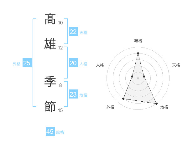 髙雄 季節さんの総格は45画の4点!