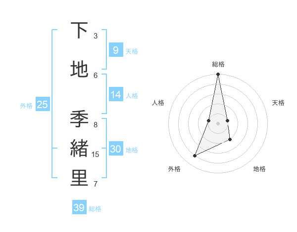 下地 季緒里さんの総格は39画の5点!