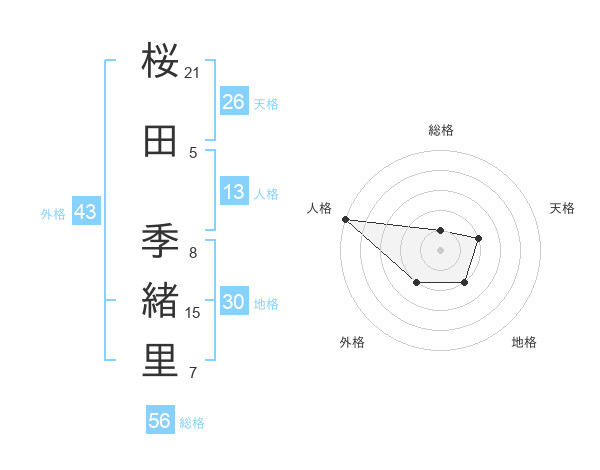 桜田 季緒里さんを姓名の画数から五運を鑑定