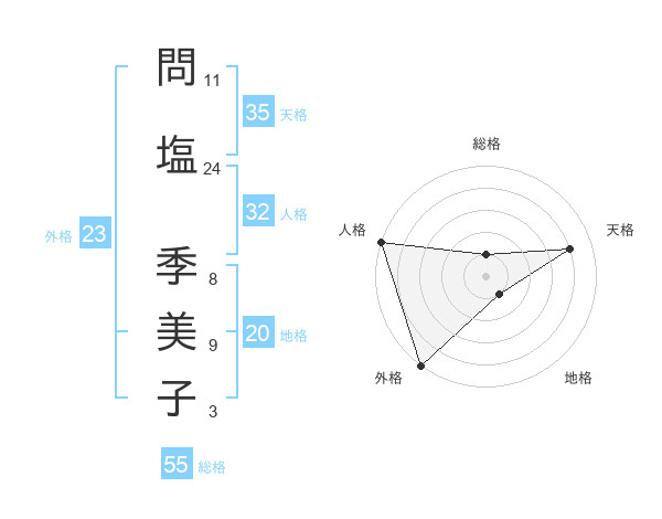 問塩 季美子さんを姓名の画数から五運を鑑定