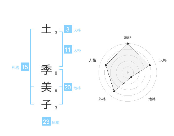 土 季美子さんの総格は23画の5点!
