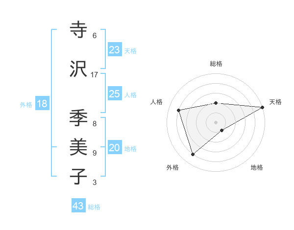 寺沢 季美子さんの天格は23画の5点!