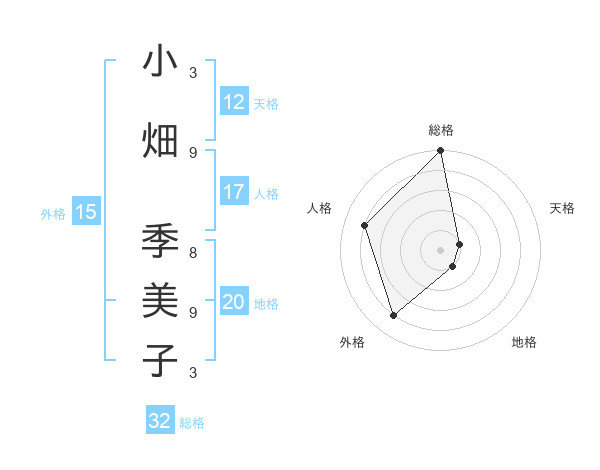 小畑 季美子さんを姓名の画数から五運を鑑定