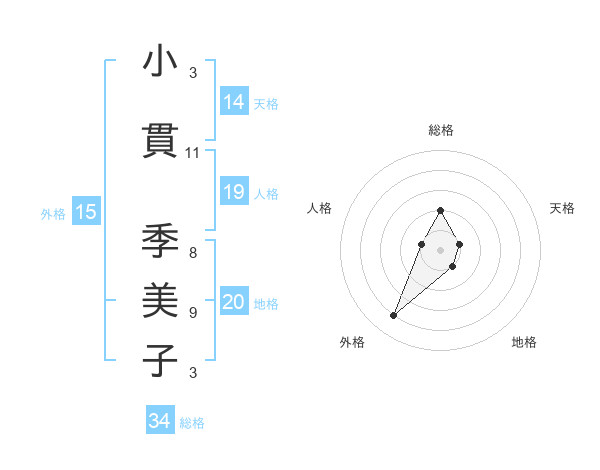 小貫 季美子さんの総格は34画の2点!