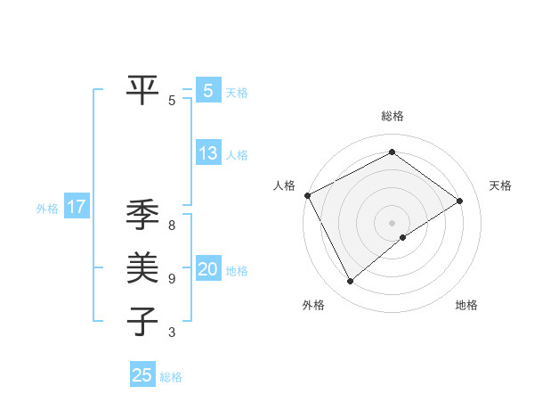 平 季美子さんの総格は25画の4点!