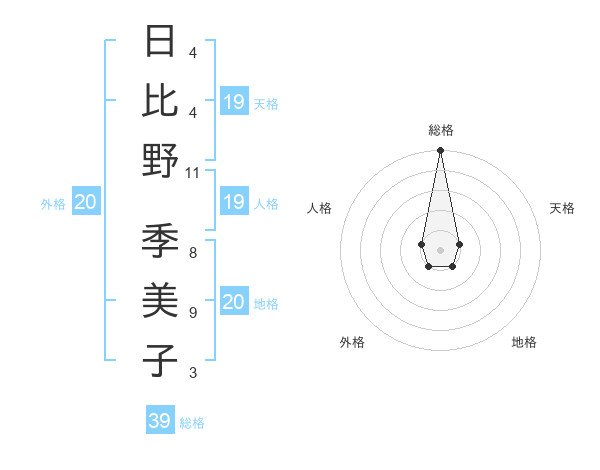日比野 季美子さんを姓名の画数から五運を鑑定