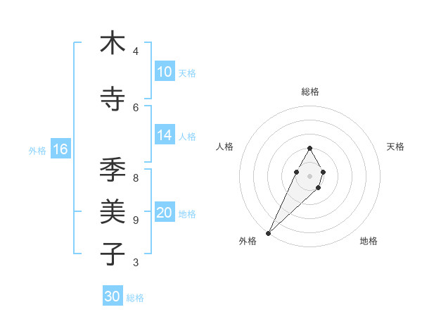 木寺 季美子さんを姓名の画数から五運を鑑定