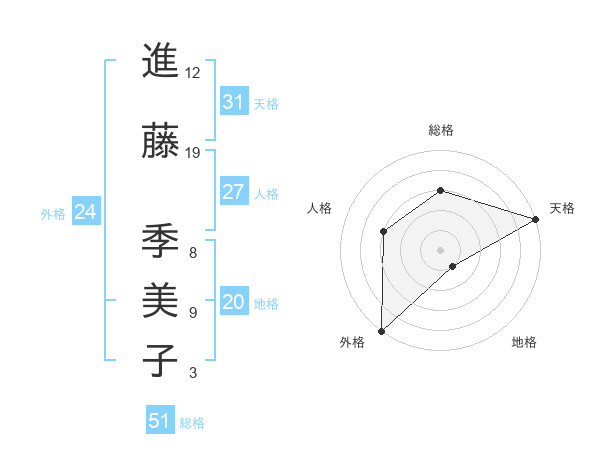 進藤 季美子さんを姓名の画数から五運を鑑定