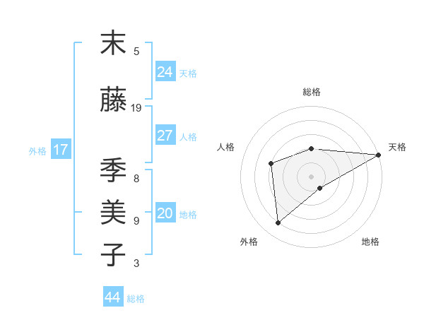 末藤 季美子さんの天格は24画の5点!