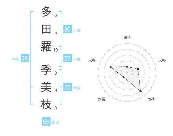 多田羅 季美枝さんを姓名の画数から五運を鑑定