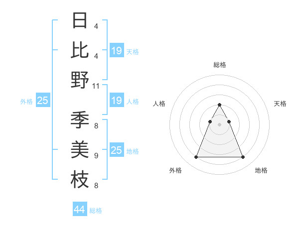 日比野 季美枝さんを姓名の画数から五運を鑑定
