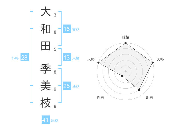 大和田 季美枝さんの人格は13画の5点