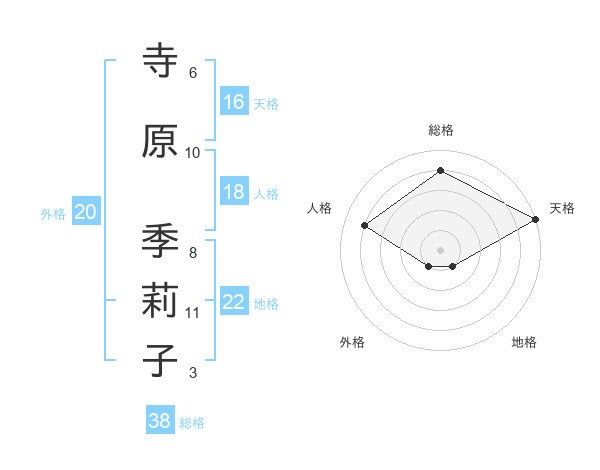 寺原 季莉子さんの総格は38画の4点!