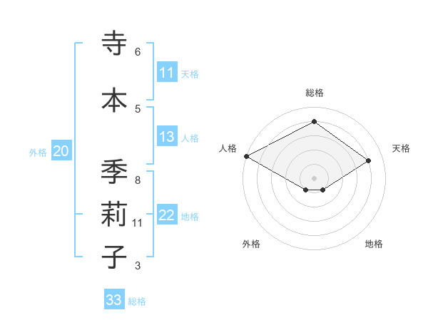 寺本 季莉子さんの総格は33画の4点!