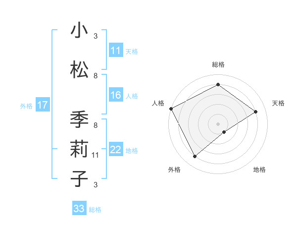 小松 季莉子さんの総格は33画の4点!