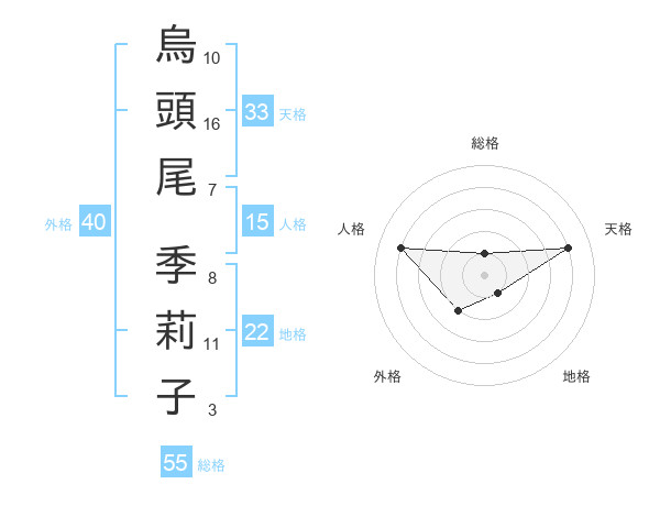 烏頭尾 季莉子さんを姓名の画数から五運を鑑定