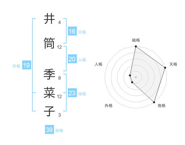 井筒 季菜子さんを姓名の画数から五運を鑑定