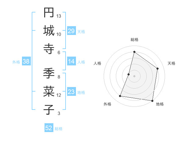 円城寺 季菜子さんの外格は38画の4点!