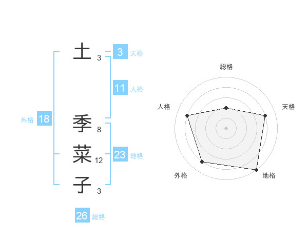 土 季菜子さんの総格は26画の2点!