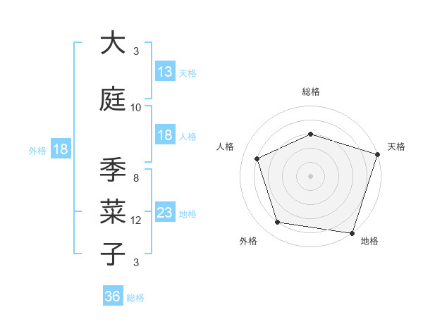 大庭 季菜子さんを姓名の画数から五運を鑑定