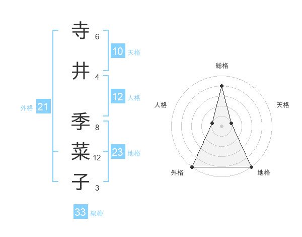 寺井 季菜子さんを姓名の画数から五運を鑑定