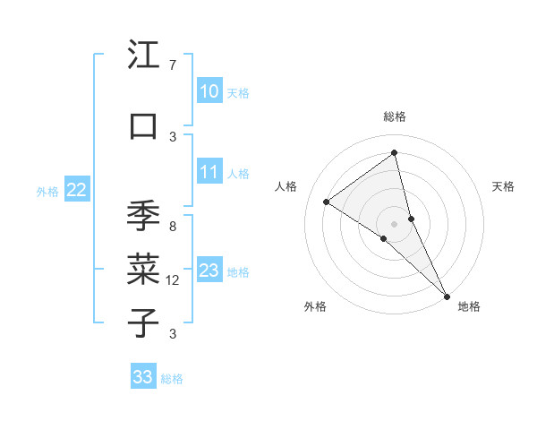 江口 季菜子さんを姓名の画数から五運を鑑定
