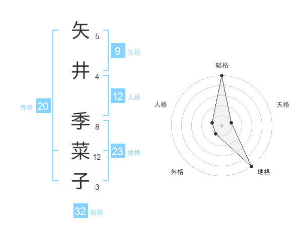 矢井 季菜子さんの総格は32画の5点!