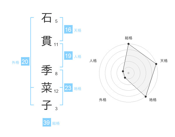 石貫 季菜子さんを姓名の画数から五運を鑑定
