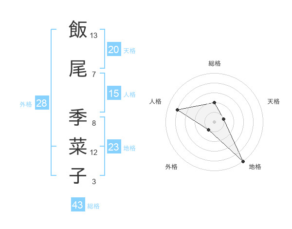 飯尾 季菜子さんの総格は43画の2点