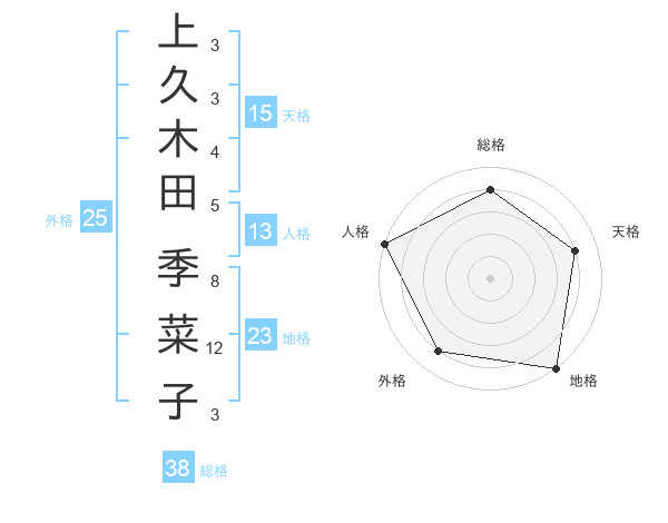 上久木田 季菜子さんの総格は38画の4点!