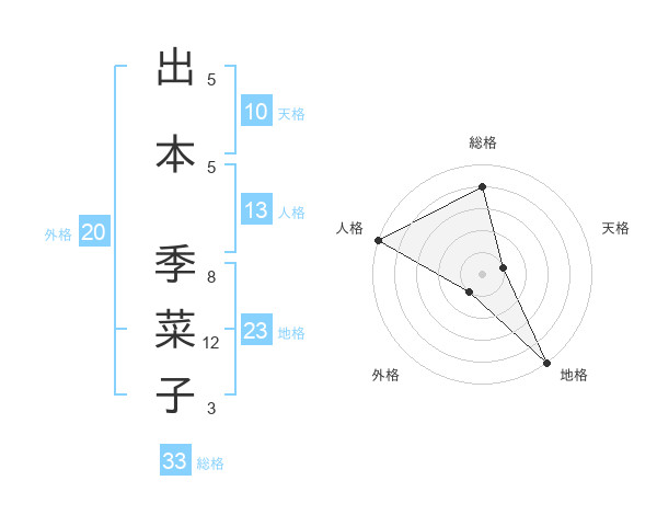 出本 季菜子さんを姓名の画数から五運を鑑定