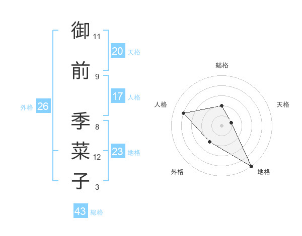 御前 季菜子さんの総格は43画の2点!