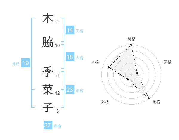 木脇 季菜子さんを姓名の画数から五運を鑑定