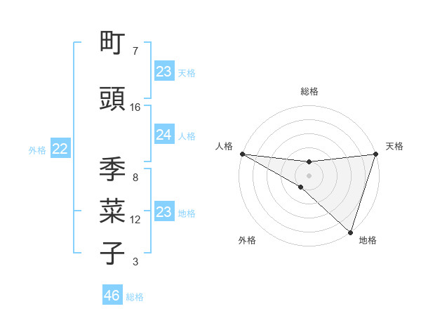 町頭 季菜子さんを姓名の画数から五運を鑑定