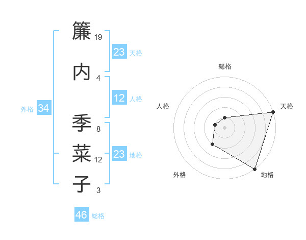 簾内 季菜子さんを姓名の画数から五運を鑑定