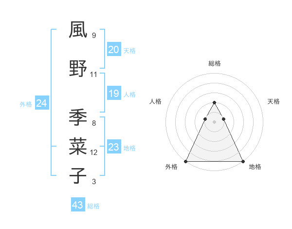 風野 季菜子さんの外格は24画の5点!