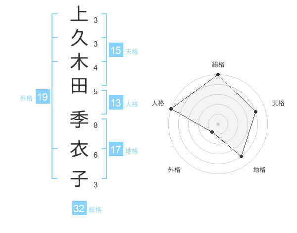 上久木田 季衣子さんを姓名の画数から五運を鑑定