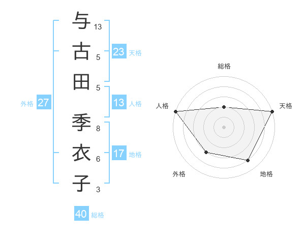 与古田 季衣子さんを姓名の画数から五運を鑑定