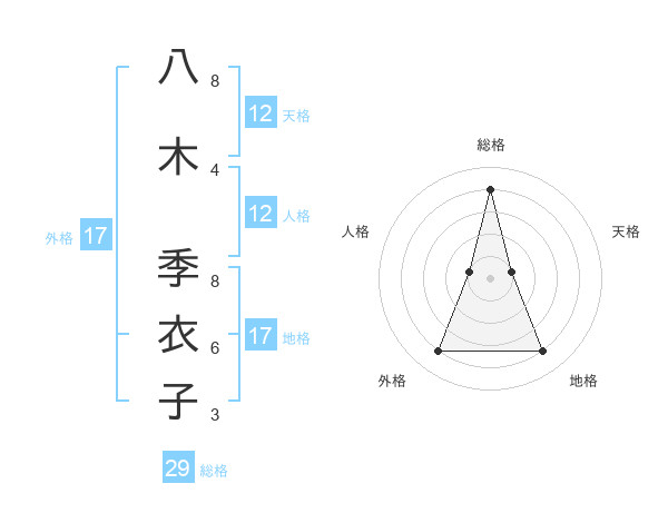 八木 季衣子さんの総格は29画の4点!