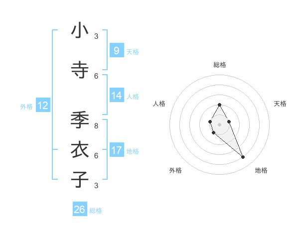 小寺 季衣子さんを姓名の画数から五運を鑑定