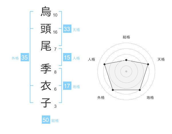 烏頭尾 季衣子さんを姓名の画数から五運を鑑定