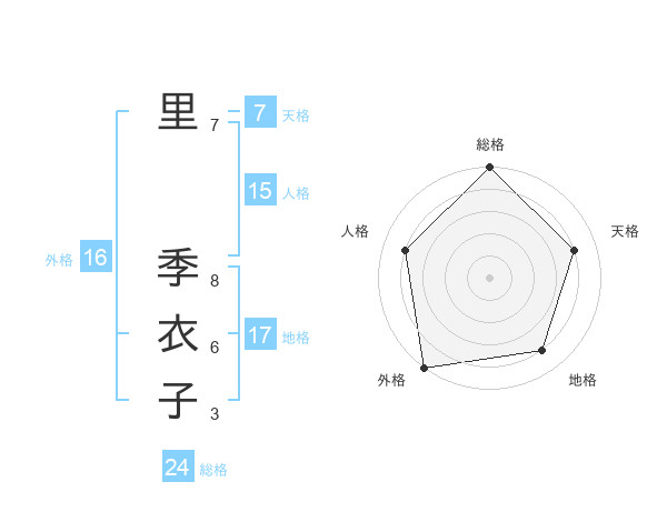 里 季衣子さんの総格は24画の5点!