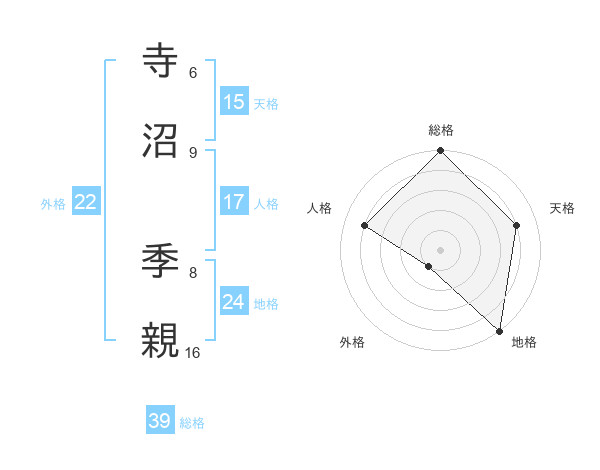 寺沼 季親さんの総格は39画の5点!