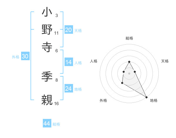 小野寺 季親さんの総格は44画の2点!