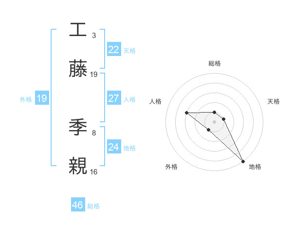 工藤 季親さんの天格は22画の1点!