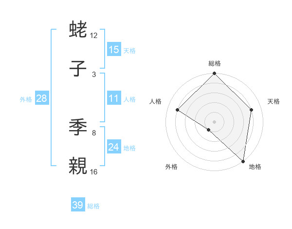 蛯子 季親さんを姓名の画数から五運を鑑定